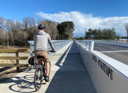 The new bridge that is part of the Puketapu Loop features two lanes and a shared cycle and walking path.